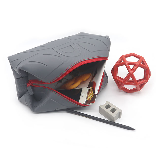 創(chuàng)意定制化硅膠收納包,此款主要設(shè)計(jì)年輕為主題,灰色為主加上紅色的點(diǎn)綴,邊邊的圖案花紋使收納包更加的年輕化和時(shí)尚。
