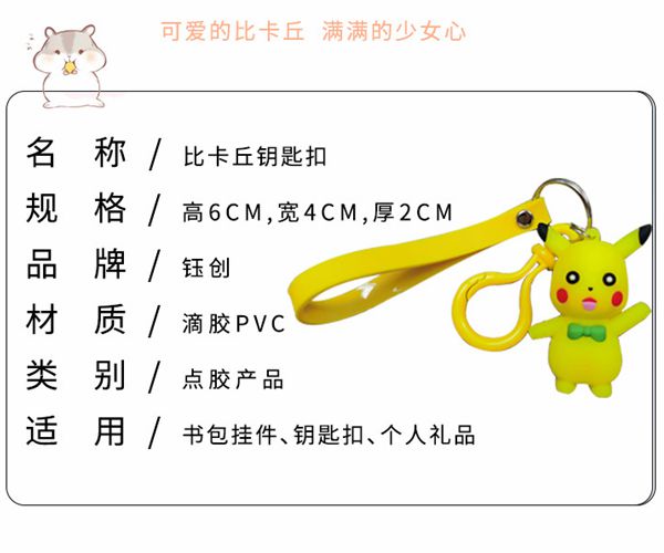 形狀:軟膠鑰匙扣造型繁多,比如卡通造型軟膠鑰匙扣、品牌造型軟膠鑰匙扣、仿真模型軟膠鑰匙扣等等,給pvc軟膠鑰匙扣選擇搭配自己喜歡的軟膠鑰匙扣,不僅可以體現(xiàn)出個人的心情與個性,更能展現(xiàn)自己的品位同時也給自己帶來更加愉快的心情。